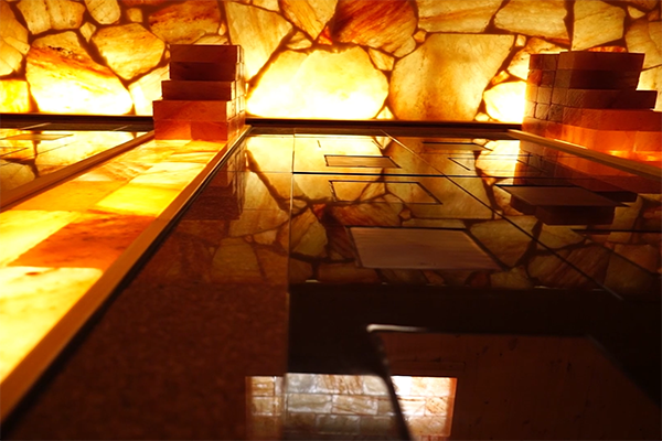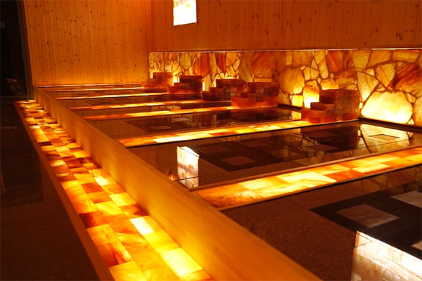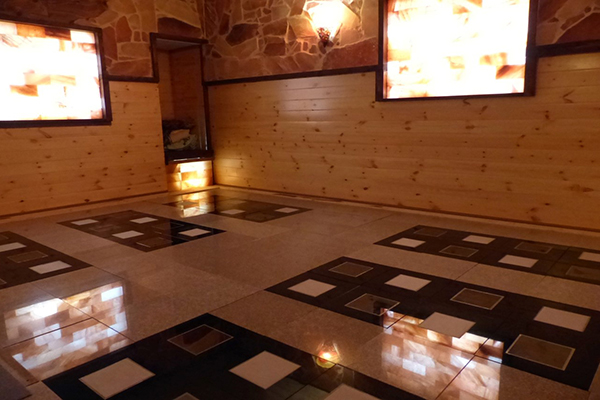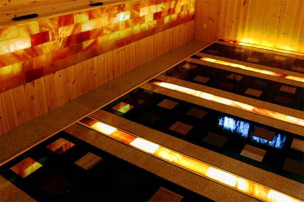 Giường đá nóng Tera có thể sử dụng trong không gian đá muối Himalaya tạo môi trường giàu ion rất tốt cho sức khỏe.
